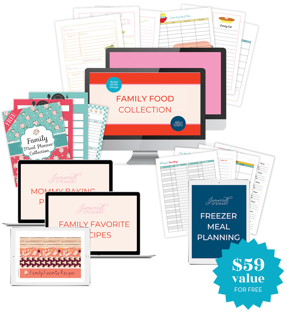 The Super Mega Family Food Collection includes over 70+ printables with everything you need to plan, organize, and feed your family well. Some of these products are PAID products in our shop ($59.99 VALUE ) but you can get these for FREE!