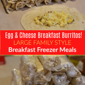 These Egg & Cheese Breakfast Burritos are a classic and easy breakfast freezer meal! You will love having these in your freezer to serve up for your family. Let me tell you, having Breakfast Burritos ready to go have saved breakfast at our house many times.