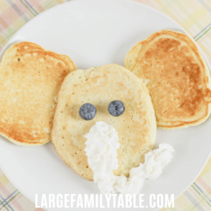 Your little people are sure to squeal with delight when they see these at breakfast. If you don’t have time to make all the pancakes in one morning, split them up. Cook all the heads one morning then do the ears on a different morning. Heat them up then add the whipped cream trunk. You could even have a different child help you for each step. Do what works for your family and enjoy your fun mom points. #momwin